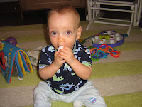 It didn't end there, and I'll make this quick. We had weekly weight checks and monthly developmental clinics where he was either too slow or far ahead or just shy of reaching where he needed to be. He had physical therapy for 2 months because of increased muscle tone, (they suspected cerebral palsy...luckily that was not the case) where he progressed at the speed of light. He had to have shots for RSV monthly for 6 months and of course...as everyone knows...me nagging "WASH YOUR HANDS!!!!"...But we made it, we made it through all that with Carter fighting his little butt off and living up to his name...The Monster. Carter dodged a lot of bullets and we're truly lucky to have gotten through this all with a ...as I see it...perfect baby. I had my doubts, but not one day goes by that I don't thank the Lord for sending me this miracle. Although he is only 11 months old (can you believe it?!), he has taught me more than any person has in my life...he is an inspiration. Throughout all this, I've really renewed my faith in God. Obviously someone was looking out for me the day of my random check up, or when Carter came close to SO many things...Nec, etc...Someone was there...holding my hand through the whole thing. If you didn't believe in God, or a higher power, before, you will now...This is my miracle baby, whom I will be thankful for for the rest of my life....